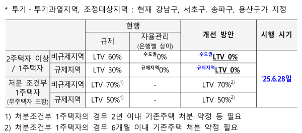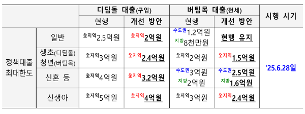 - 정책대출 LTV 및 한도 축소