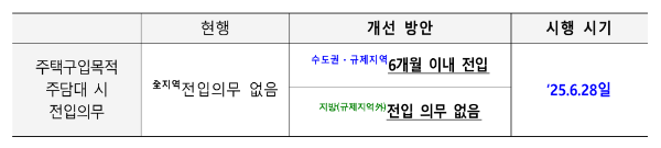- 주담대 사용시 6개월 이내 전입 의무화